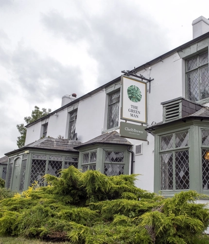 Pick up a menu and settle down at a table in the pub’s inviting interiors. Grab one near the fire for a little extra ambience or slide into one of the comfy banquette seats. There’s always plenty of space for larger groups. Plus, the Green Man Inn has lots of handy amenities, from a big car park and disabled access to free Wi-Fi and menus for kids.
